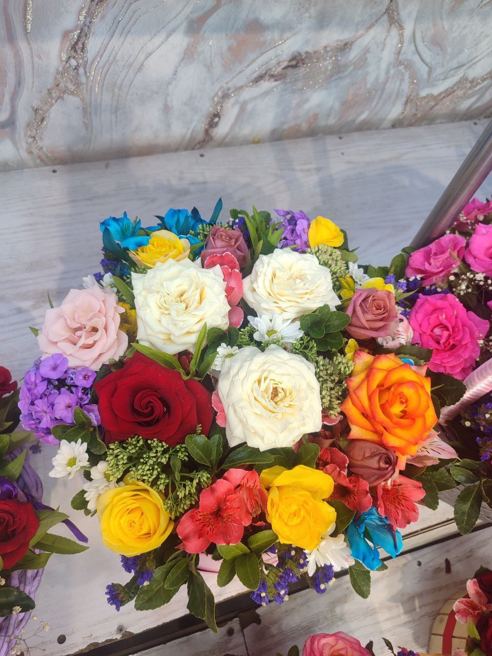 🌹🏵🌺Состав: Жёлтые , белые , красные, коричневые, розовые розы, альстромерий и гортензии